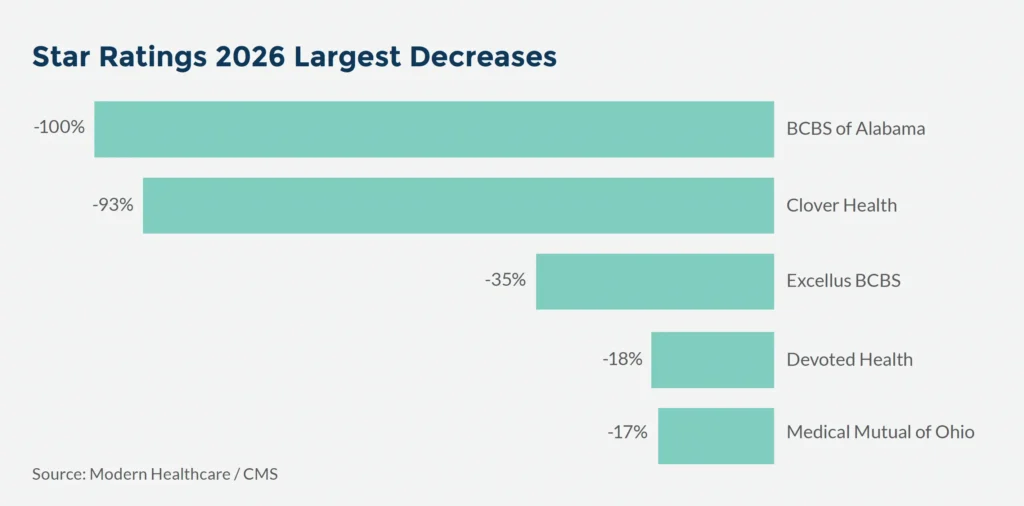 - Only 62% of members are in 4-Star plans, down from 74% in 2024.